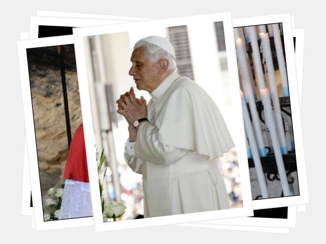 Personnellement ce n'est pas Benoît XVI forçant sa nature pour se montrer plus chaleureux qui m'a réellement et profondément touchée mais c'est à chaque fois et partout Benoît XVI en prière. Devant le mur occidental, lors des messes, durant sa prière à la grotte de Nazareth et devant le Saint Sacrement dans la chapelle des Franciscains.
