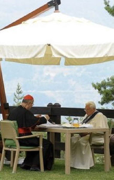 Alors, en route pour des vacances bon marché, plus sobres, dans le plus pur style Ratzinger. Et bien sûr, sans oublier d'emmener son porte-documents, parce qu'aujourd'hui, le travail ne doit jamais cesser. Le pape Benoît XVI a amené le sien à Castel Gandolfo. C'est un vieux sac en cuir noir dont il se servait déjà quand il était préfet du Saint-Office. Aujourd'hui encore, il l'emporte avec lui dès qu'il quitte son appartement, bien que cette année, il ait aussi un iPad que lui a offert Mgr Claudio Maria Celli, responsable de la communication. Il peut y télécharger les journaux italiens, ceux en anglais et surtout en allemand.