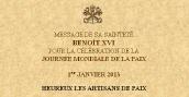 Hier a été publié le message du Pape pour la journée mondiale de la paix. Une "petite encyclique". Premier grand texte pontifical post-twitter. Comment trouver en équilibre entre les partisans des 140 caractères, et ceux qui "interdisent" de le fractionner? (15/12/2012, mise à jour)