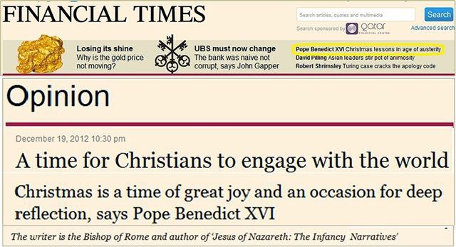 A time for Christians to engage with the world By Pope Benedict XVI ------------------