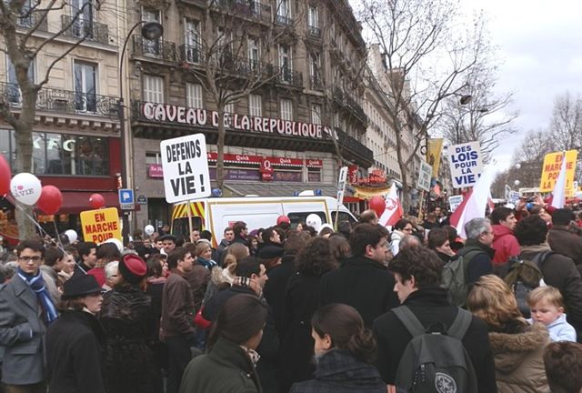 PS J’oubliais, un article de Religion en Libertad qui donne pour la planète hispanophone un aperçu de notre Marche : C’est gentil de leur part car ce sont vraiment les Espagnols les spécialistes des méga-manifestations pro vie (et pas sûr que la timide réforme du nouveau gouvernement Rajoy annoncée récemment, avortement d’une mineur nécessitant désormais le consentement des parents, soit susceptible de calmer le jeu ! Sur le sondage du journal ici près de 90% des personnes qui ont donné leur opinion considèrent qu’il s’agit d’esbrouffe pour faire taire les voix les plus critiques).