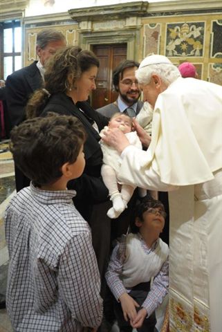 En français, nous en avons parlé ici, l'article est traduit avec un titre qui ne correspond absolument pas aux paroles du Pape, et même les annule, en quelque sorte: "Les souffrances des couples stériles".