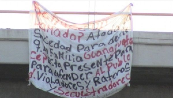 Dans sept municipalités de Guanajuato ont été accrochées 11 « narco-draps » attribuées au Cartel des « Chevaliers Templiers ». Les présumés narco-messages étaient écris sur une toile de couleur blanche et les lettres du texte étaient de couleur rouge et noire.