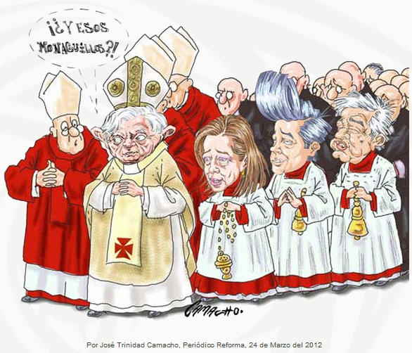 Un voyage politique... à l'insu du Saint-Père. La classe politique mexicaine, à la veille d'élections importantes, est venu le voir et l'écouter. Récupération? Carlota a trduit deux articles de la presse mexicaine. (27/3/2012)