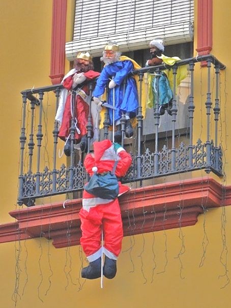 Aussi, facétieuse, je ne résiste pas à la tentation de vous envoyer la photo ci jointe (qui portait initialement la légende: "Rivalité: Papa Noël, l'Espagne est notre territoire, alors, dehors!). Le combat culturel prend aussi cette forme-là et pour l’instant pour ce cas précis, il n’est pas encore perdu en Espagne!