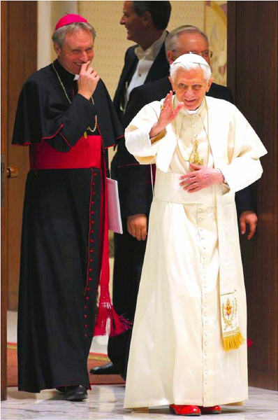 des images souriantes autour du Pape: le rire de don Georg, et l'émotion du président de la Lazio (30/1/2013, mise à jour le 31: Lucio Brunelli, et le cardinal Antonelli)