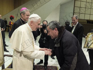 Lucio Brunelli, l'auteur du beau documentaire diffusé sur RAI 2 "Benedetto XVI, ritratto inedito" (c'est une occasion pour une "séance de rattrapage") était également présent, et le Pape, avec délicatesse, l'a remercié.
