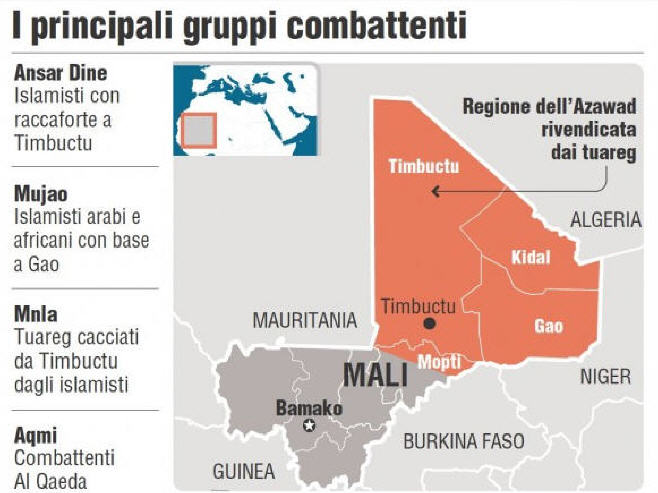 Faute d'un accord entre le gouvernement et le MNLA, un sanglant conflit ethnique pourrait se superposer à la guerre contre les djihadistes. Un processus équivalent, mais inversé, à ce qui a été enregistré en Libye après la chute de Kadhafi, quand tous les immigrés africains et les nombreux Libyens à peau noire subirent massacres, pillages, viols, tortures, violences et réclusion dans au moins 80 prisons secrètes gérées par la différentes milices.