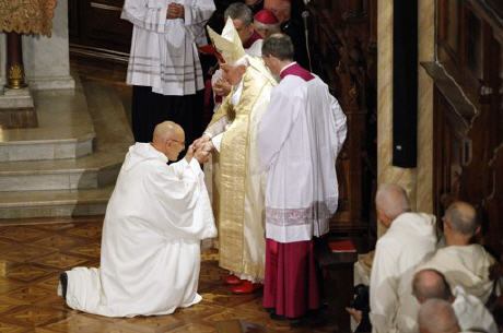 Certains pourraient penser qu'il suffit de venir ici pour faire de ce «saut». Mais ce n'est pas le cas. Cette vocation, comme toute vocation, trouve une réponse dans un chemin, dans la recherche de toute une vie. Il ne suffit pas de se retirer dans un endroit comme celui-ci pour apprendre à se tenir en présence Dieu. Comme dans le mariage, il ne suffit pas de célébrer le Sacrement pour devenir réellement une seule chose, mais il faut laisser la grâce de Dieu agir, et parcourir ensemble le quotidien de la vie conjugale, de même, devenir un moine réclame le temps, l'exercice, la patience, «dans une persévérante vigilance divine - comme l'affirmait Saint Bruno - attendant le retour du Seigneur pour lui ouvrir immédiatement la porte» ( Lettre à Rodolphe , 4); et en cela réside la beauté de toute vocation dans l'Eglise: donner à Dieu le temps d'œuvrer avec son Esprit, et à sa propre humanité de se former, de grandir selon la mesure de la maturité du Christ, dans cet état de vie particulier. Dans le Christ, il y a le tout, la plénitude; nous avons besoin de temps pour faire nôtre l'une des dimensions de son mystère. On pourrait dire que c'est un chemin de transformation où se réalise et se manifeste le mystère de la résurrection du Christ en nous, un mystère que nous a rappelé ce soir la Parole de Dieu dans la lecture biblique tirée de la Lettre aux Romains : l'Esprit Saint , qui a ressuscité Jésus d'entre les morts, et qui donnera vie à nos corps mortels (cf. Rm 8,11), est Celui qui accomplit aussi notre configuration au Christ, selon la vocation de chacun, un chemin qui serpente des fonds baptismaux jusqu'à la mort, passage vers la maison du Père. Parfois, aux yeux du monde, il semble impossible de rester toute une vie dans un monastère, mais en réalité, toute une vie est à peine suffisante pour entrer dans cette union avec Dieu, dans cette réalité essentielle et profonde qui est Jésus-Christ.