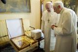 Parmi ces moments, il y a eu celui des cadeaux. Après la prière dans la chapelle, François a donné à Ratzinger une icône mariale.