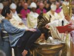 ... le 20 avril 2011, Benoît XVI, presque entièrement "a braccio", explique "les trois jours saints au cours desquels l'Église fait mémoire du mystère de la passion, de la mort et de la résurrection de Jésus", et en particulier la Messe de la Cène du Seigneur. (28/3/2013).