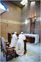 Notre cher Benoît a demandé de prier pour lui. Nous savons qu'il est au monastère Mater Ecclesiae, nous avons déjà vu des photos. J'en ai trouvé d'autres, qui aident à voir sa chapelle. Ainsi nous pouvons aller spirituellement prier avec lui dans sa chapelle...