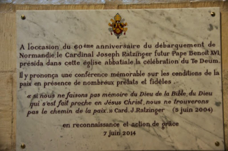 Elle rappelle le discours prononcé par le cardinal Ratzinger dans l'abbatiale Saint-Etienne de Caen, le 5 juin 2004. Des photos personnelles transmises par Anne (12/6/2014)