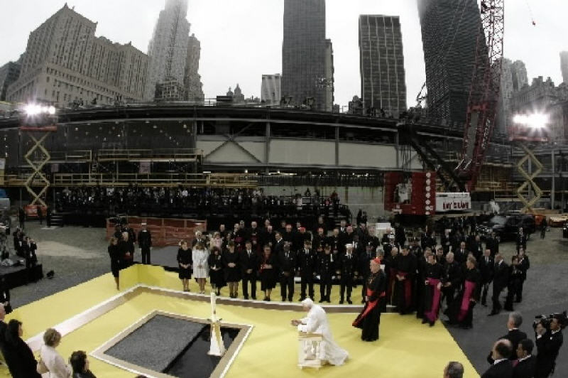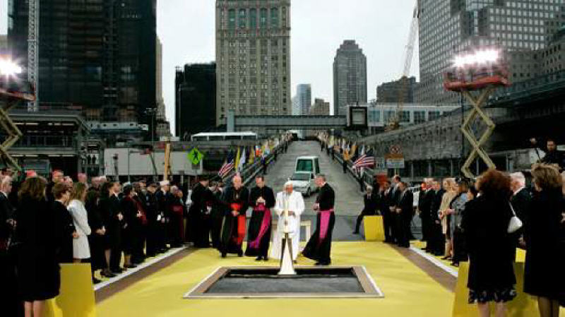 Je veux seulement rappeler ici la visite (elle aussi à l'époque entourée de polémiques stériles, dont plus personne ne se souvient) faite par Benoît XVI le 20 avril 2008, lors de son voyage aux Etats-Unis, sur le site des Tours Jumelles.