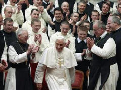 C'est en effet le jour où le Saint-Père a élevé l'Institut supérieur de notre ordre, fondé en 1802, en Institut Supérieur de droit pontifical. A cette occasion, l'abbé Gregor Henckel Donnersmarck, lui a attribué le nom du Pape. De cette façon, l'«Institut supérieur de philosophie et de théologie de Heiligenkreuz Benoît XVI» est le premier du genre à porter ce nom, mais nous sommes certains que d'autres Instituts, Ecoles, et peut-être même Universités vont suivre l'exemple; et pas seulement comme un hommage et un signe de profond respect pour l'actuel Successeur de Pierre, mais aussi parce qu'il est clair qu'avec Joseph Ratzinger, le 19 Avril 2005, l'un des grands théologiens de ce siècle a été élu Pape.