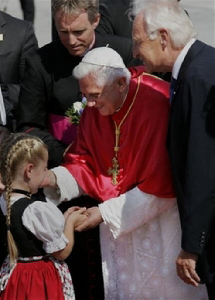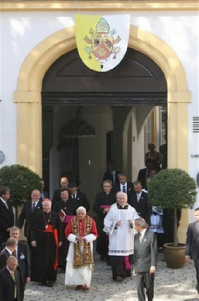 Le lendemain, mardi, à Ratisbonne, diocèse érigé par saint Boniface en 739 et dont le Patron est l'Evêque saint Wolfgang, se sont déroulés trois rendez-vous importants. Le matin, la Messe sur l'Islinger Feld, au cours de laquelle, reprenant le thème de la visite pastorale "Celui qui croit n'est jamais seul", nous avons réfléchi sur le contenu du Symbole de la foi. Dieu, qui est Père, veut recueillir, à travers Jésus Christ, toute l'humanité dans une unique famille, l'Eglise. C'est pourquoi celui qui croit n'est jamais seul; celui qui croit ne doit pas avoir peur de finir dans une voie sans issue. Dans l'après-midi, je me suis ensuite rendu dans la Cathédrale de Ratisbonne, également célèbre pour son choeur de voix blanches, les "Domspatzen" (passereaux de la cathédrale), qui s'enorgueillit de mille années d'existence et qui, pendant trente ans, a été dirigé par mon frère Georg. C'est là que s'est tenue la célébration oecuménique des Vêpres, à laquelle ont pris part de nombreux représentants des diverses Eglises et communautés ecclésiales en Bavière et les membres de la Commission oecuménique de la Conférence épiscopale allemande. Cela a été une occasion providentielle pour prier ensemble, afin qu'arrive au plus tôt la pleine unité entre tous les disciples du Christ et pour réaffirmer le devoir de proclamer notre foi en Jésus sans affaiblissement, mais de manière intégrale et claire, et surtout pour notre comportement d'amour sincère.