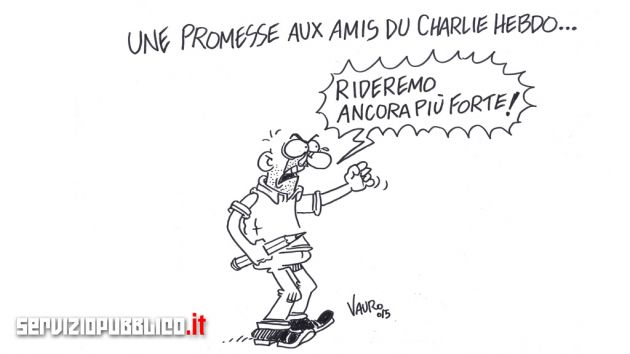 Le caricaturiste Vauro, icône de la satire communiste et "no Vatican", a dédié à la mort des douze journalistes français une caricature où il promet: «Nous allons rire encore plus fort».