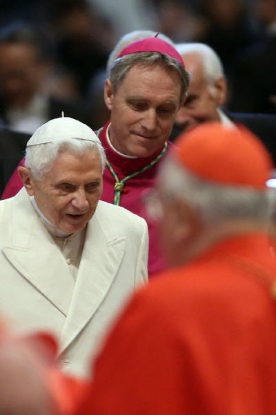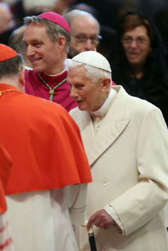 La vie régulière semble réussir à notre cher émérite, d'après les photos prises lors du consistoire. Je trouve que tous les autres cardinaux vieillissent autour de lui tandis qu'il est toujours aussi beau, aussi rayonnant de vie intérieure.