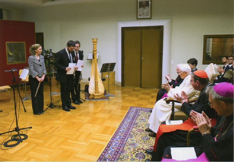 Sans lui, peut-être que personne n'aurait signalé à Raffaella qu'un groupe musical ("le Trio Böhm") s'était produit devant le pape émérite et son frère le 15 janvier au Vatican - car les photos semblent avoir essaimé de la page Facebook du "Trio" (où elles avaient été publiées le 15) juste après l'article de mon amie.