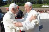 «Une accolade, puis ensemble ils sont entrés dans la chapelle du monastère pour prier côte à côte, comme à Castel Gandolfo. "Benoît XVI est heureux de revenir au Vatican, à l'endroit où il a l'intention de se consacrer, comme lui-même l'a annoncé le 11 Février, au service de l'Église, surtout par la prière", a fait savoir leSaint-Siège. À l'arrivée François lui a souhaité la bienvenue avec beaucoup de cordialité et de fraternité", fait savoir la salle de presse du Vatican. Ensemble, ils sont allés à la chapelle du monastère "pour un bref moment de prière"» ( Corriere della Sera )