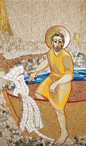 >>> Saint Pierre quitte sa barque pour suivre le Seigneur. Chapelle de la nonciature apostolique à Paris. Image ici.
