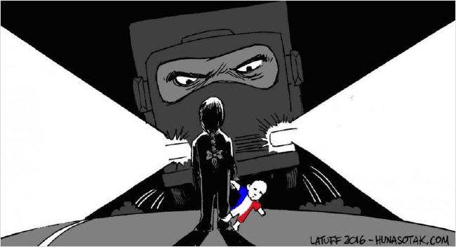 Peu importe de savoir si le "franco-tunisien" qui a massacré 84 personnes comme si c'était sur une piste de bowling, était un terroriste formé par l'ISIS, les amis de ces Saoudiens que Hollande reçoit à l'Elysée avec tous les honneurs, et qui une fois retournés chez eux financent ceux qui massacrent les Français (tout cela n'est que la reddition ignoble d'une classe politique européenne corrompue et lâche).