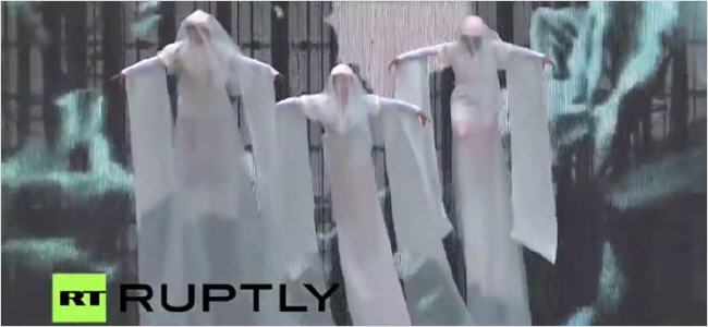 La video qui suit, en deux parties, n'est pas très longue, et mérite d'être vue en entier pour se faire une idée de ce spectacle pour lequel les qualificatifs me manquent.