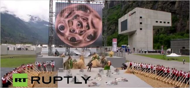 En présence des personnes les plus puissantes d'Europe, la cérémonie d'ouverture du tunnel du Gothard en Suisse fut un étrange rituel satanique, sombre et inquiétant.