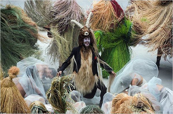 Un homme déguisé en bouc devient le maître de cérémonie et tout le monde lui rend hommage.