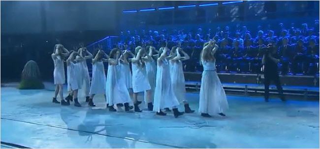 Après avoir dépeint les ouvriers comme des soldats zombis, la cérémonie dépeint la population en général comme un groupe de personnes lascives qui semblent extrêmement influençables.