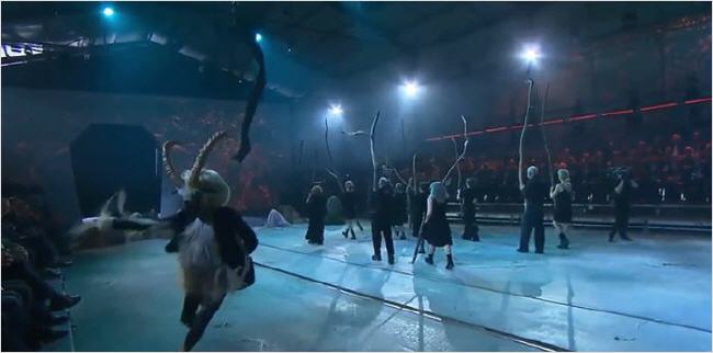 A partir de ce moment, le spectacle se transforme en une pure et simple cérémonie satanique.