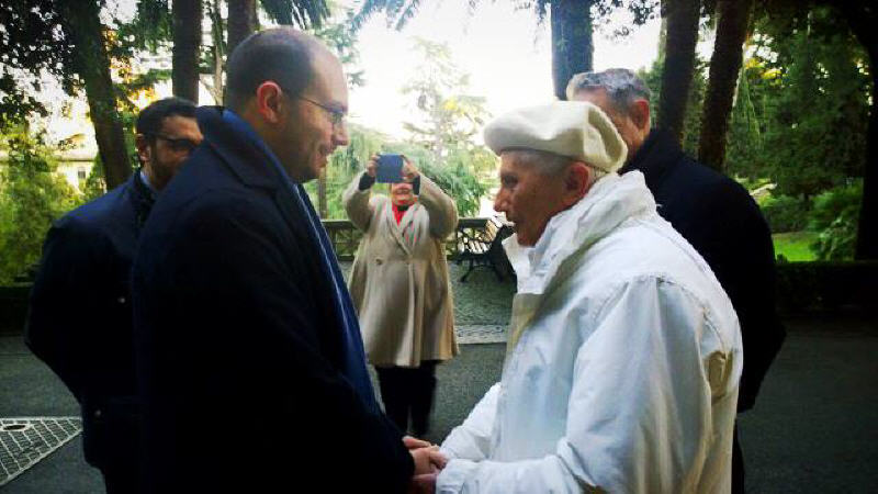 Tu voudrais dire tellement de choses, quand tu rencontres Benoît. Et puis tu ne les dis pas. Non pas parce que tu es ému, au contraire, tu es incroyablement à ton aise, le Pape émérite te regarde dans les yeux, il est très attentif à chaque parole, il te fait te sentir bien. Mais c'est justement là qu'on ne dit rien. Parce qu'il y aurait tellement de choses à dire que tu ne sais pas par où commencer. Et aussi parce que, quand tu rencontres Benoît, cela ne vaut probablement pas la peine de poser des questions. Il faut surtout écouter. Seulement que c'est lui qui veut t'écouter toi.