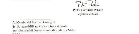 La lettre du Cardinal Parolin à l'Ordre de Malte