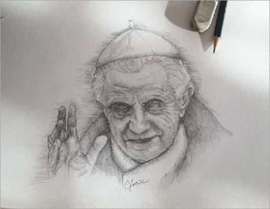 Ce portrait du pape émérite a été réalisé et nous a été envoyé par Gloria Castrovinci, étudiante de théologie à la faculté théologique du nord de l'Italie (Milan).