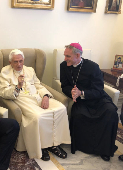 L'archevêque Georg Gänswein, secrétaire personnel de Benoît XVI, a rejeté l'affirmation selon laquelle le pape émérite aurait confirmé les accusations de l'ancien diplomate du Vatican, Carlo Viganò. «Le pape Benoît XVI n'a pas commenté le "mémorandum" de l'archevêque Viganò et ne le fera pas», a déclaré Gänswein au journal. L'affirmation selon laquelle le pape émérite avait confirmé les déclarations n'a aucun fondement: "Fake news!"», déclare Gänswein.