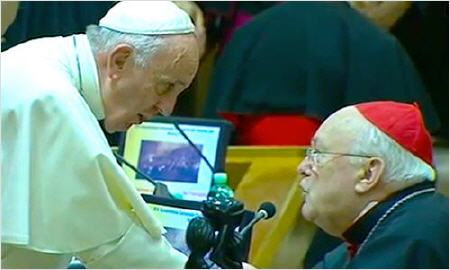 Voilà qui est – ou devrait être – le point essentiel. Le pape a choisi le cardinal Danneels pour participer au synode sur la famille, alors qu’on savait par un enregistrement vocal [publié dans la presse, ndt] que le cardinal avait recommandé à une personne ayant été sexuellement abusée par un autre évêque [Mgr Vangheluwe, évêque de Bruges, ndt] de garder le silence sur le crime commis. Il était choquant (et il est toujours choquant aujourd’hui) que pour débattre des problèmes liés à la famille le pape ait sorti de sa retraite un prélat exposé au déshonneur public. Tout en exigeant haut et fort que les évêques soient tenus responsables de l’étouffement des affaires d’abus, le pape a tenu à honorer personnellement un cardinal reconnu par tous comme l’un de ses principaux partisans et membre de la « mafia de Saint-Gall » qui avait soutenu son élection.