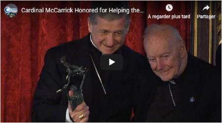 Nous voici donc en 2008. Et voici McCarrick qui, sous les feux de la rampe, qu'il aime tant, accepte de recevoir un prix des diplômés de l'Université [jésuite] Notre-Dame et déploie tout son arsenal, bien connu de ceux qui ont eu l'occasion de le rencontrer: esprit irlandais fascinant, récit captivant, humour et autodérision, humanisme (youtu.be/NnM3959OzTc )