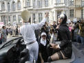 A mesure qu'ils progressaient, les manifestants ont croisé des catholiques se dirigeant vers Hyde Park pour assister à une veillée de prière autour du souverain pontife. Quelque 80.000 fidèles y sont attendus. Certains ont échangé des invectives.