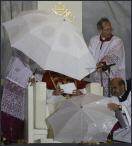 Le Pape dans la tempête Après l'épisode de l'ouragan lors de la veillée de samedi, le beau commentaire de Frédéric Mounier, sur son blog de la Croix, qui dément une méchante rumeur (21/8/2011)