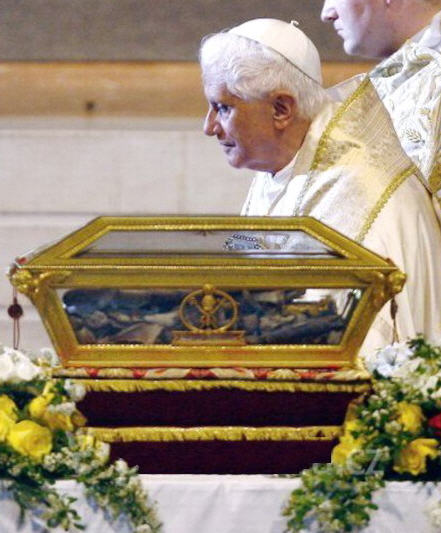 Dans le pélerinage auprès des reliques de Saint-Augustin, accompli à la fois comme théologien et comme pasteur de l'Eglise, Benoît XVI a de nouveau mis en lumière ses choix pour un service à l'Eglise et à la société, sur le modèle de Saint-Augustin en son temps, au milieu d'une crise profonde de l'empire romain d'occident. Dans da visite à Pavie, Papa Ratzinger a dit beaucoup de choses importantes pour éclairer ses ressemblances avec Augustin d'Hippone, un des plus grands Pères de l'Eglise pour la doctrine et la Sainteté. Mais il n'a pas tout dit. Ce n'est qu'en complétant le puzzle de ses plus récentes pensées sur Augustin que l'on peut comprendre la sensibilité existentielle, culturelle et pastorale qui prévalent chez Benoît XVI, quand il veut proposer à l'Occident tout entier, et en particulier à l'Europe, un retour à Dieu. Sa proposition n'est pourtant pas motivée par l'orgueil, par l'impatience des néophytes ou des fondamentalistes, mais elle se fonde sur un témoignage chrétien offert "dans un style humble, respectueux et cordial". C'est ainsi que se trouve relancée l'encyclique sur l'amour. Devant les restes du Saint évêque d'Hippone, exposées dans la basilique Saint-Pierre au Ciel d'or, à Pavie, Benoît XVI a relancé l'actualité stratégique de son encyclique-programme "Deus caritas est". Parlant de l'amour de Dieu, , le Pape l'a décrit comme le coeur de l'Evangile, le noyau central du christianisme, sans lequel tout devient superflu, sinon inutile. "Devant la tombe de Saint-Augustin, a-t'il dit, je voudrais livrer à nouveau à l'Eglise et au monde mon encyclique, qui contient ce message central de l'Evangile 'Dieu est amour'. Cette encyclique, surtout dans sa première partie, est largement débitrice de la pensée de saint-Augustin, qui était amoureux ('innamorato') de l'Amour de Dieu, et qui l'a chanté, médité, prêché, dans tous ses écrits, et surtout en a témoigné dans son ministère pastoral". Le Pape a dit ensuite que dans la continuation du Concile, et selon ses prédécesseurs immédiats, il est lui-même convaincu que "l'humanité d'aujoud'hui a besoin de ce message essentiel, incarné en Jésus-Christ: 'Dieu est amour'; tout doit partir de cela, tout doit y arriver, tout acte pastoral, toute considération théologique". Le message actuel d'Augustin à l'Eglise est celui-ci: "L'amour est l'âme vive de l'Eglise, et de son action pastorale". Et "seulement celui qui vit l'expérience personnelle de l'amour du Seigneur, est en mesure d'exercer le devoir d'accompagner les autres à la suite du Christ." Le Pape propose toute une palette de méthode, d'identité chrétienne, à l'écart de tout intégrisme et de tout "temporalisme". Il explique: "Servir le Christ est avant tout une question d'amour. Chers frères et soeurs, que votre appartenance à l'Eglise, vostre apostolat, resplendissent toujours dans la liberté de chacun, et l'adhésion sans réserve à l'amour du Christ". Pour mieux encore éclaicir cette caractéristique écclésiale, Benoît XVI en vient à formuler une définition nouvelle, une mise à jour de l'Eglise, y compris par rapport au Cathécisme de l'Eglise Catholique: "L'Eglise n'est pas la simple organisation de manifestations collectives, ni -à l'opposé- la somme d'individus qui vivent une religion privée. L'Eglise est une communauté de personnes qui croient en Dieu Jésus-Christ, et qui s'engagent à vivre dans le monde le commandement de la charité qu'il nous a laissé". S'agissant d'une communauté où l'on est "éduqués à l'amour" à travers les vicissitudes de la vie, on comprend mieux la sollicitude du Pontife à s'adresser avant tout aux jeunes, qui sont en chemin vers la maturation personnelle. Aux jeunes, en effet, revient le devoir d'annoncer la joyeuse nouvelle de l'Evangile, son message de réconciliation et de pardon. Dans son message pastoral, le pape encourage tout le monde à poursuivre "le but le plus élevé" de la vie chrétienne, qui trouve dans la charité la voie étroite de la perfection, et qui doit se traduire aussi par un mode de vie inspiré de l'Evangile, inévitablement en opposition avec les moeurs courantes, mais à témoigner toujours dans un style humble, respectueux, et cordial. Voici donc l'invitation, à partir de la tombe de Saint-Augustin: "porter dans son coeur la joie d'être disciple de l'amour".