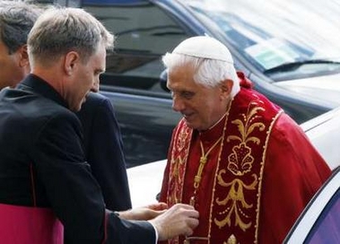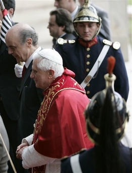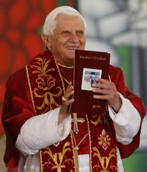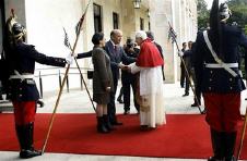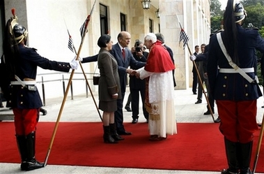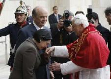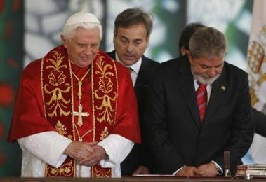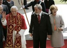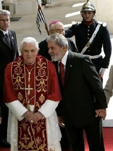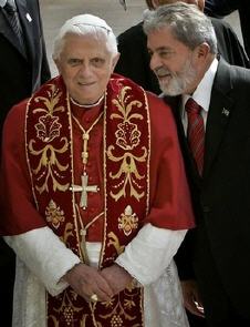 Ci-dessus: Lula remet à Benoît XVI le timbre commémoratif de sa visite
