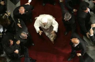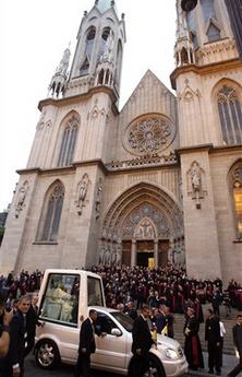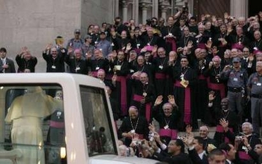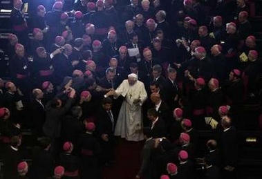 Après la messe de canonisation, le Pape a rencontré à 16 h en la cathédrale de Sao Paulo les évêques du Brésil,, auxquels il s'est adressé "sans mâcher ses mots"