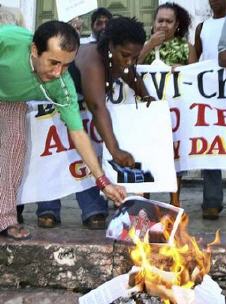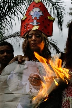 J'ai vu ces photos révoltantes, parmi les nombreuses images illustrant le triomphe fait au Saint-Père à Sao Polo. Partant du principe que "tout ce qui est excessif est dérisoire", et surtout, que ces excès ne manqueront pas de se retourner contre leurs auteurs, j'archive ces témoignages de l'intolérance de ces mouvements... et surtout, de leurs invraisemblables relais médiatiques! Chacun est libre de constater de qui vient la haine.