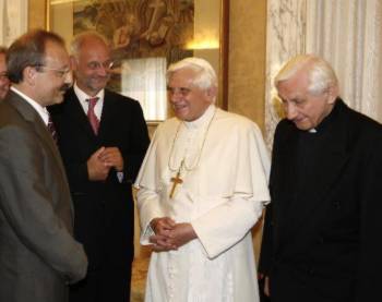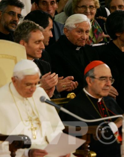 Un cadeau spécial: un concert "très privé" pour son frère don Georg, dans un cadre d'exception: la Chapelle Sixtine. Voilà le cadeau que Papa Ratzinger, oreille raffinée comme celle de son frère aîné, a voulu offrir à Georg Ratzinger, lors de son séjour au Vatican pour les fêtes de Noël. Concert d'une petite heure, qui a eu lieu le 4 janvier -mais tenu très secret- et mis au point par le Choeur de la Chapelle Musicale Pontificale, conduit par le Maestro Mgr Giuseppe Liberto, qui est depuis 10 ans le directeur de l'ensemble musical du Pape. "C'était le souhait de Benoît XVI, d'offrir un concert à son frère". "Ce fut un moment très privé et intense -raconte à l'agence Apcom Mgr Giuseppe Liberto- un moment de très grande émotion. Le Pape écoute toujours avec cette intelligence si intuitive qui le caractérise, et il propose des commentaires d'une grande élévation".