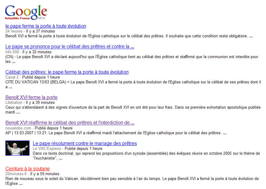 Sans surprise la presse bien-pensante (de gauche, mais c'est un pléonasme, et y-en-a-t'il d'autre, en France?) s'étrangle de rage... Cette réaction est plutôt une bonne nouvelle. Sauf, qu'une fois encore, c'est à travers ce prisme déformant que l'information parviendra au "grand public" (je viens de regarder le forum d'une grande chaîne de télévision, c'est édifiant, et effarant tout à la fois!) Comme d'habitude, la classe médiatique dans son ensemble feint de s'indigner de ce qui lui est parfaitement indifférent, comme par exemple l'impossibilité de recevoir la communion pour les divorcés-remariés, , la "baisse préoccupante" (!!) des vocations, ou le célibat imposé aux prêtres. Au nom de quel magistère, s'arrogent-ils le droit de nous donner leur avis?