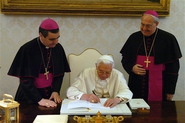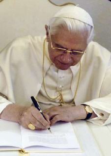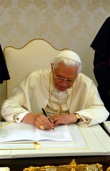 Le Pape signe le document, ce matin au Vatican. Photos Papacy and the Vatican on Yahoo