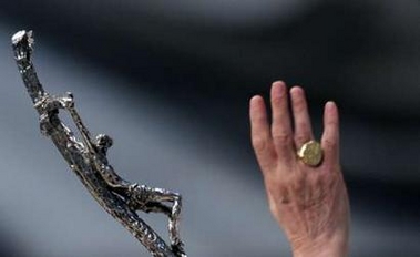 A propos de la messe In Cena Domini, ce commentaire lu sur Zenit, qui illustre bien le charisme personnel du Pape, dont la seule attitude parvient à ramener au silence et à la concentration les foules impressionnantes et pas toujours disciplinées qui le suivent: ------------------------ ... à l’issue de l’Eucharistie, le pape a porté le Saint-Sacrement au reposoire installé dans une chapelle latérale. Il s’y est recueilli en adoration pendant de longues minutes, le temps du chant du « Tantum ergo » et ensuite en silence, un silence contagieux. Car, dans l’assemblée, la cohue qui avait traduit visiblement pendant près de deux heures, toute la difficulté de mettre en pratique l’invitation de l’Evangile du jour – « Aimez-vous les uns les autres » -, la lutte pour les centimètres d’espace vital ou pour gagner du terrain vers les positions stratégiques où l’on « verrait le pape » (en l’absence d’écrans géants comme à Saint-Pierre), sous le regard d’un service d’ordre admirable de patience, faisait finalement place au recueillement. ------------------------- Messe 'in Cena Domini' (photos)