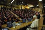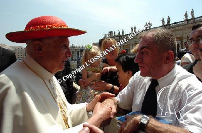 Bénit XVI a une extraordinaire capacité d'improviser, pas seulement quelques plaisanteries, mais des phrases entières souvent longues et élaborées, dans une langue qu'il maîtrise, mais qui n'est pas sa langue maternelle. La capacité d'improvisation est tellement habituelle que la Salle de presse du Vatican attend la fin des discours pour insérer les phrases improvisées dans le texte préparé à l'avance. En un mot, Papa Ratzinger est un grand "improvisateur". C'est l'une des nombreuses anecdotes émergeant de l'audience à l'episcopat italien, que le Pape a rencontré hier dans la salle du Synode. En improvisant, il a dit, suscitant l'hilarité et les applaudissements des évêques, que, grâce aux "visites ad limina" que ceux-ci ont accomplies à Rome, lui, depuis son bureau au troisième étage du Palais Apostolique, "a appris la géographie de l'Italie". Ensuite il a expliqué, toujours en improvisant : "J'ai appris la géographie, disons extérieure", mais surtout la géographie "spirituelle" de la "belle Italie". Autre improvisation et autres applaudissements lorsque il a cité son livre publié par Rizzoli, qui rencontrent un grand succès éditorial : "Le livre" Jésus de Nazareth ", un livre très personnel, non pas du Pape mais de cet homme, a été écrit avec cette intention : que nous puissions à nouveau, avec le coeur et avec la raison, voir que le Christ est vraiment celui que le coeur humain attend ". ------------- L'Eco di Bergamo, 25 maggio 2007