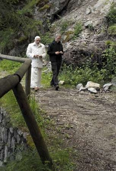 Un pas de montagnard. --------------------------- "Le Pape a un pas de montagnard, on voit qu'il a envie de se promener". C'est ce qu'a dit l'évêque Andrich, en marge de l'exposition sur les itinéraires d'art dans les églises du Haut-Bellunese. "J'ai accompagné le SaintPère le jour de son arrivée", rapporte l'évêque, "le long du sentier en légère pente du château Mirabello vers sa maison. J'ai noté qu'il avait un pas rapide, très rapide ". .. De la rencontre avec Benoît XVI Mgr Andrich souligne "essentiellement la grande simplicité et la sérénité". Pour Andrich, en outre, "le Saint-Père a le désir de rencontrer les gens, mais des problèmes de sécurité ne le permettent pas". Et l'évêque répète : "Il m'a surpris par sa simplicité et par sa sérénité".