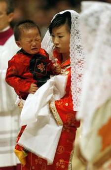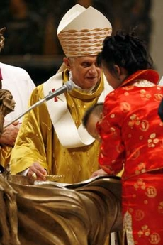Une liturgie impressionnante de beauté, durant trois heures, qui s'est ouverte par la scène solennelle de l'allumage puis de la bénédiction du cierge pascal, dans la Basilique Saint-Pierre. Le Saint-Père, qui a concélébré avec une trentaine de cardinaux, a baptisé six femmes adultes, dont deux chinoises, et deux japonaises, et deux petits enfants.